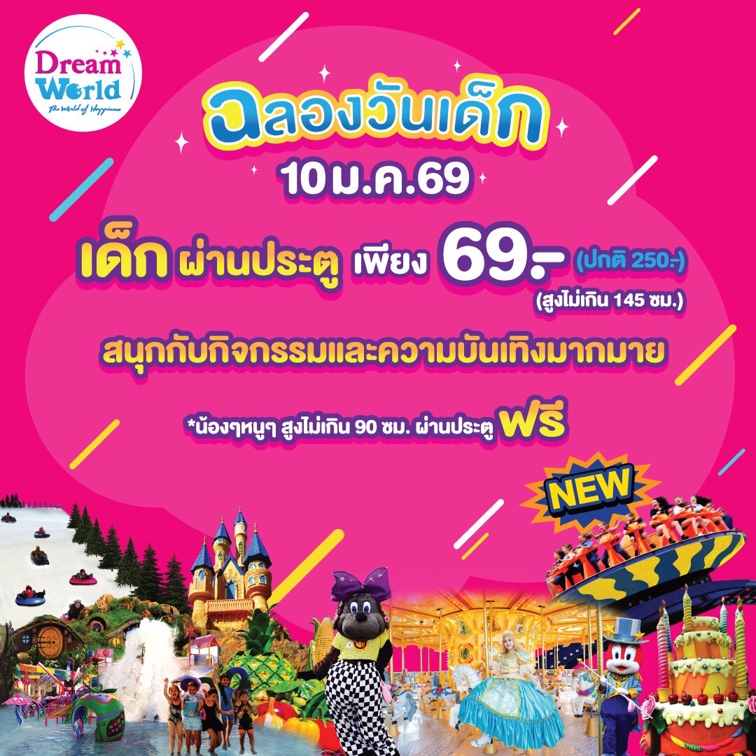 อ่านข่าวต้นฉบับได้ที่ : วันเด็ก 2569 ดรีมเวิลด์ ลดราคาบัตรผ่านประตูเด็ก เหลือ 69 บาท